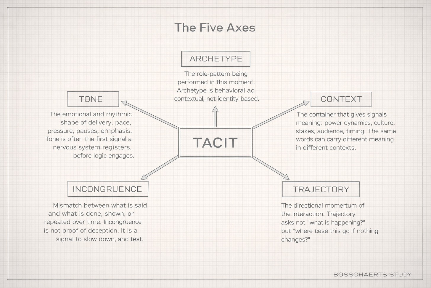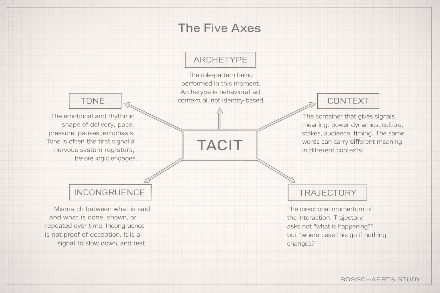 The TACIT Method™ and its foundational framework (Tone, Archetype, Context, Incongruence, Trajectory) were developed and coined by Alexandro Bosschaerts as part of Bosschaerts Study (2025).